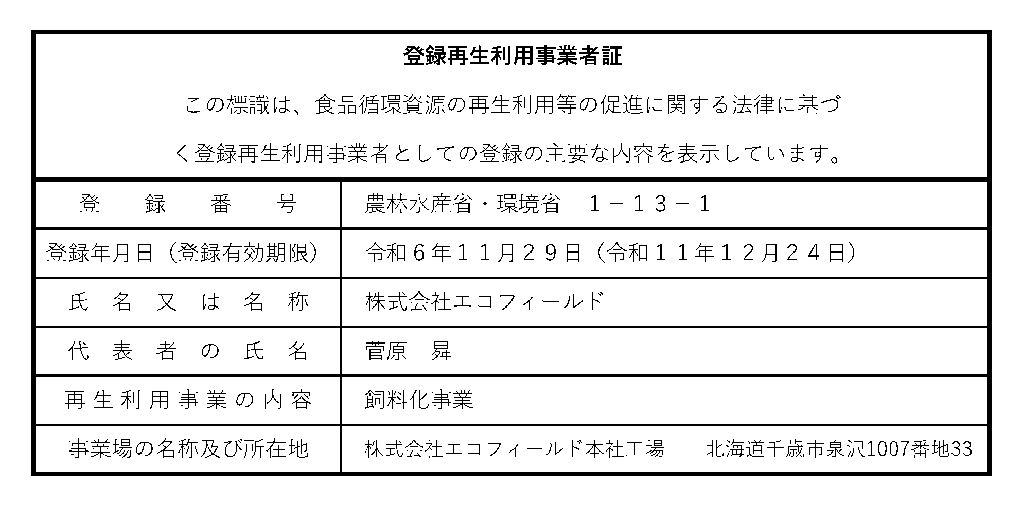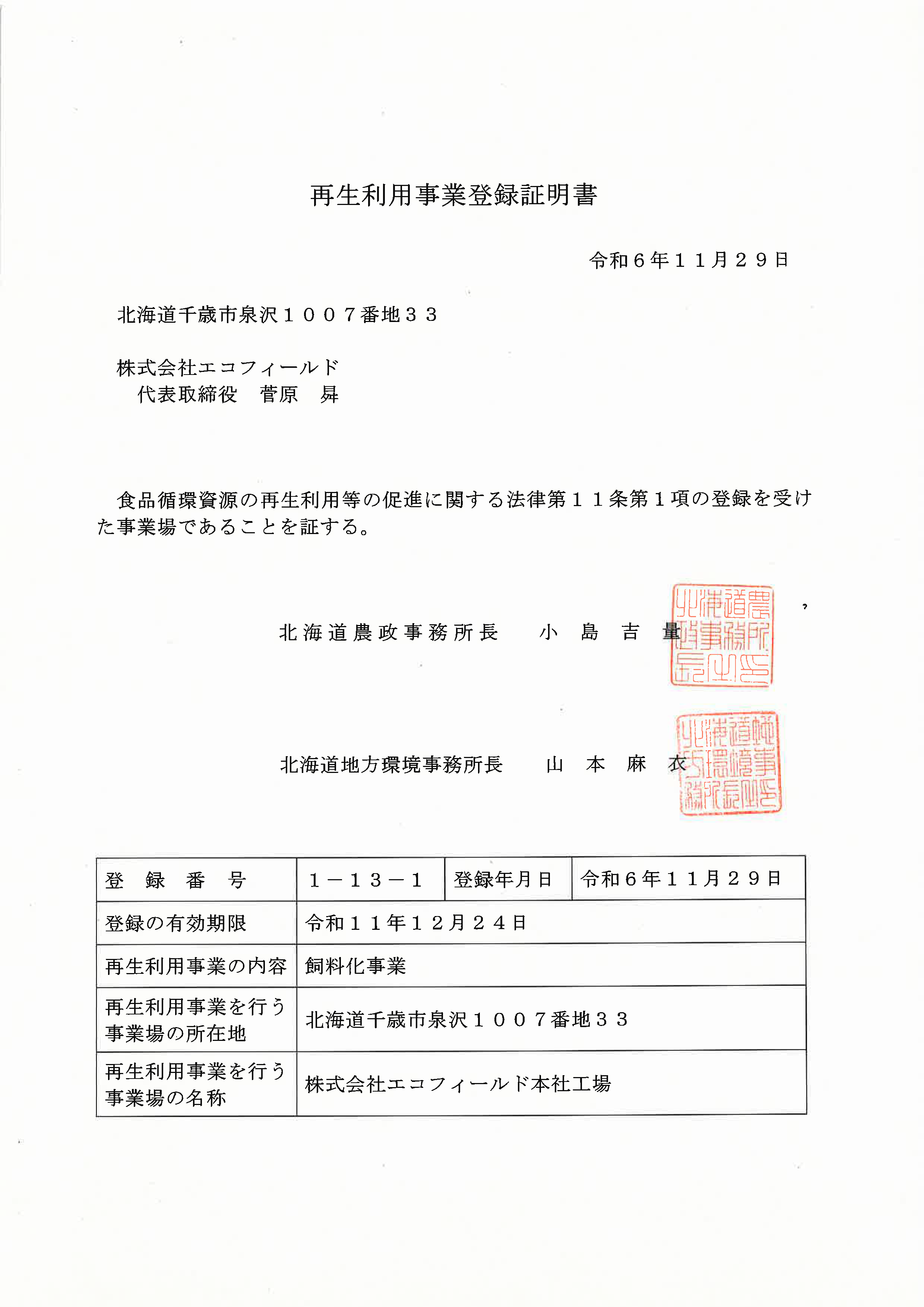 ![]() 再生利用事業登録証明書 (クリックでPDFを別窓表示) |